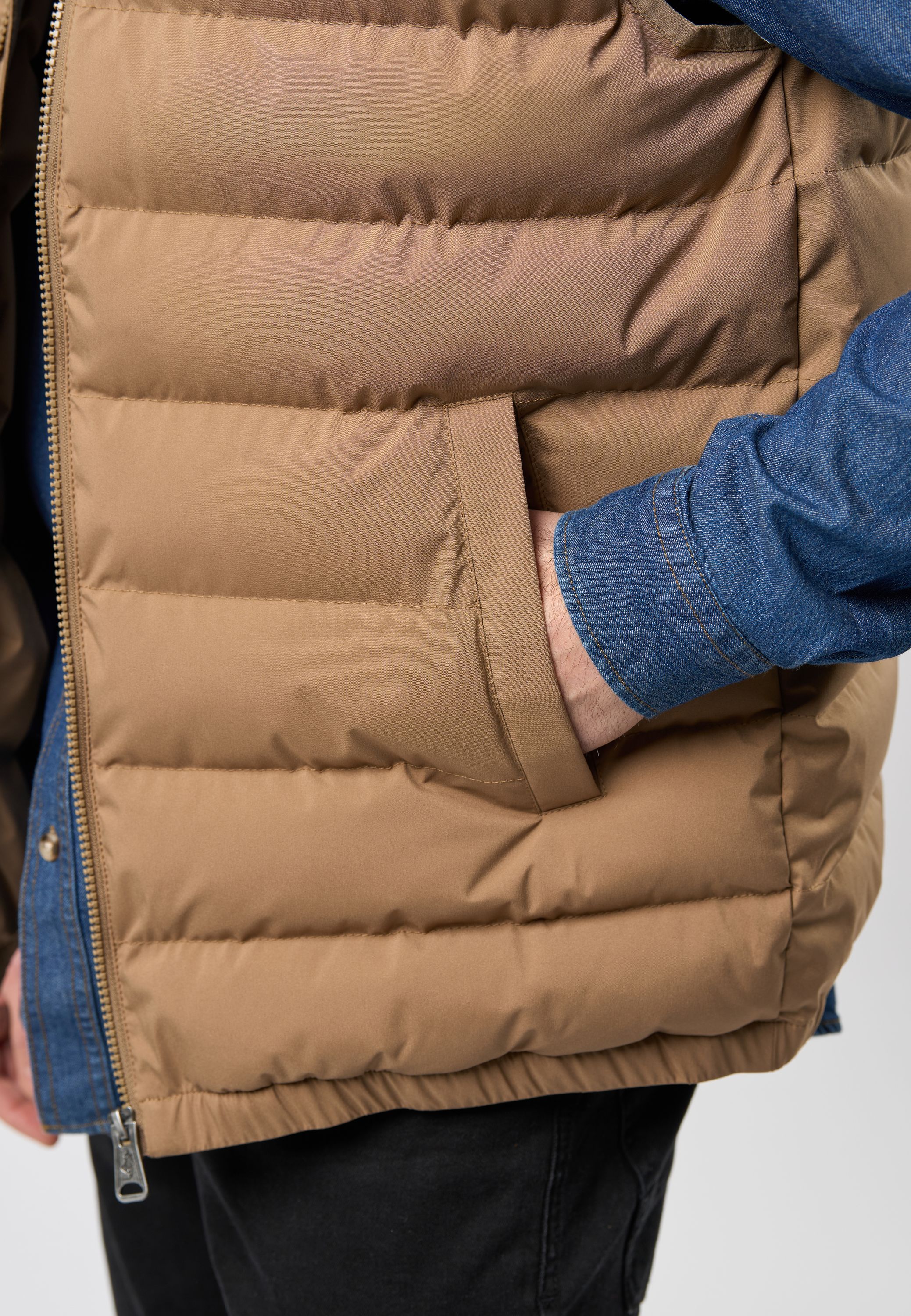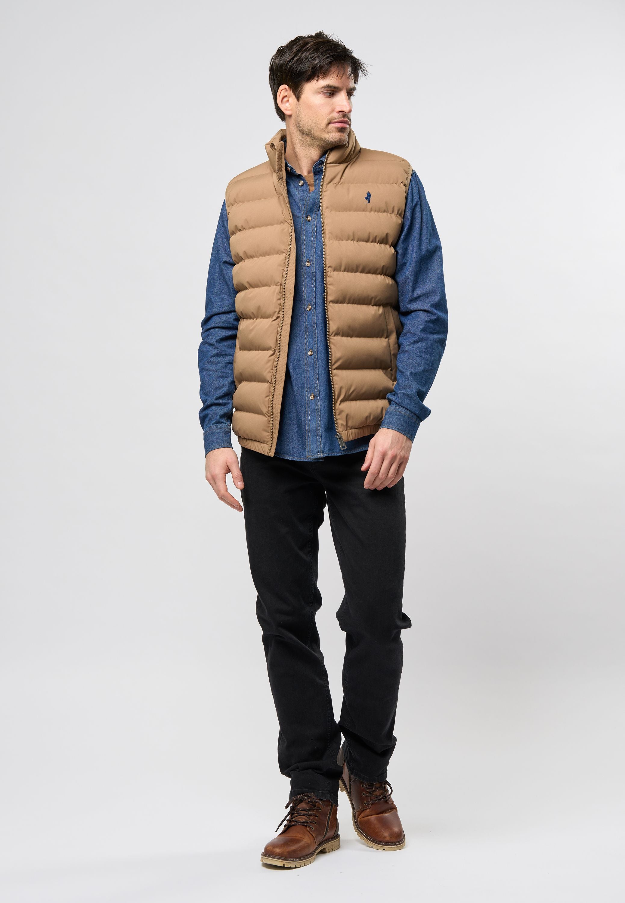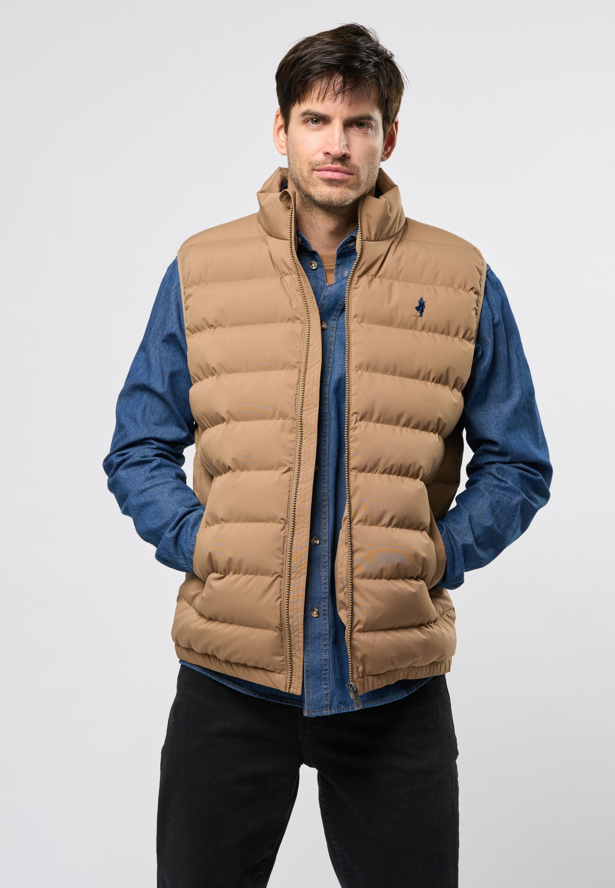 Aidan er en klassisk og funktionel vest, der kombinerer varme og stil i ét enkelt design. Den quiltede struktur giver både et moderne look og ekstra isolering, hvilket gør den ideel til lag-på-lag-styling i overgangsperioder eller som et let ydre lag på kølige dage. Vesten har høj krave, gennemgående lynlås og praktiske sidelommer. Det diskrete Rider-logo broderet på brystet tilføjer et genkendeligt touch.