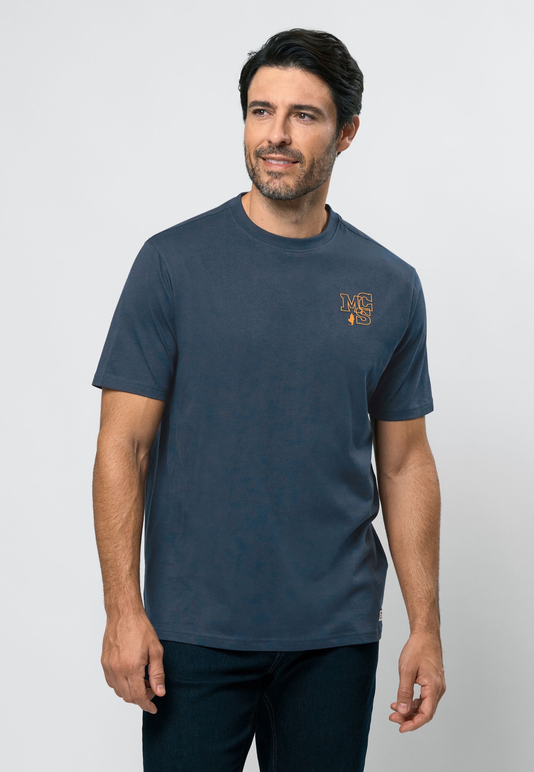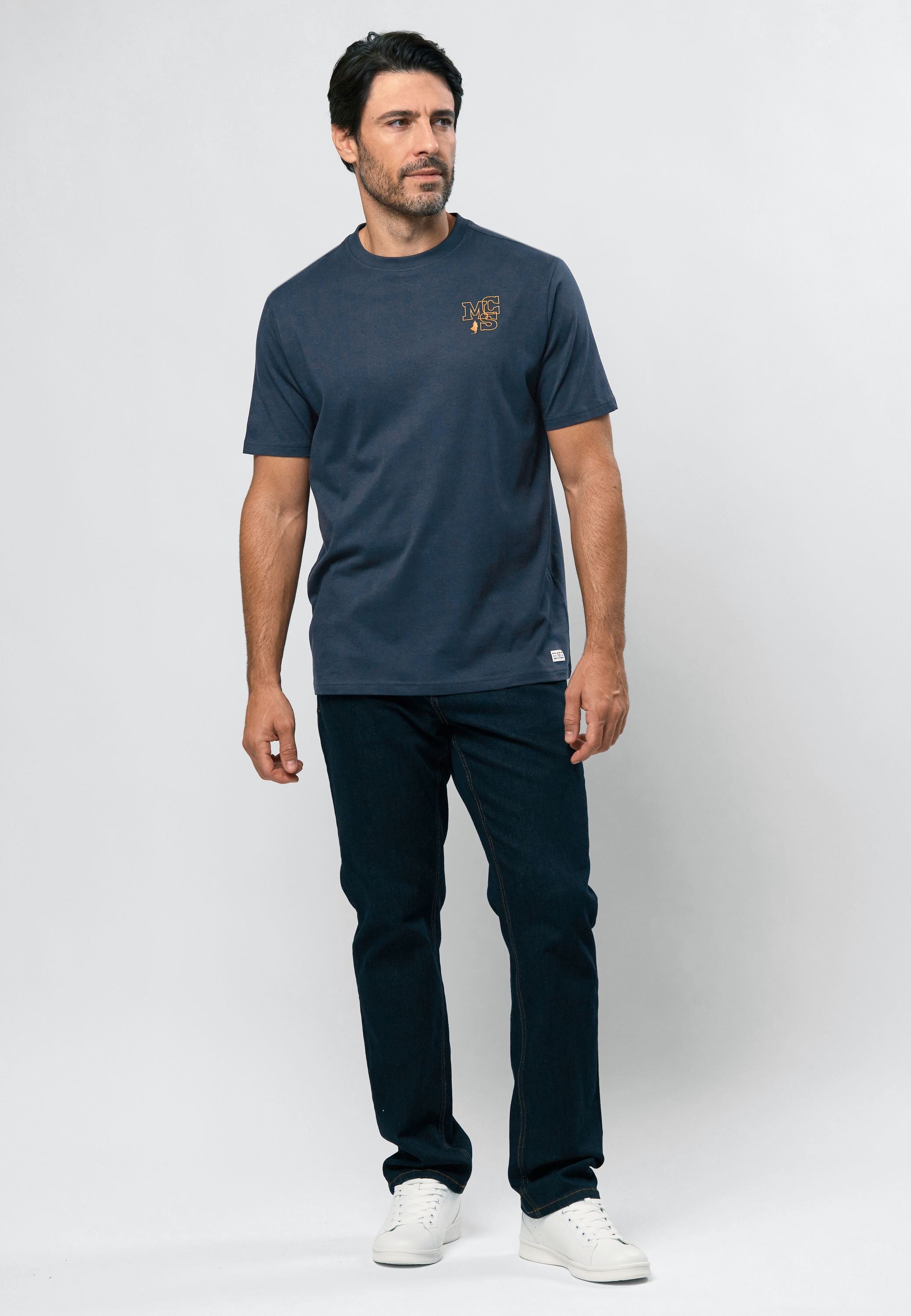Nigel er en klassisk t-shirt i blød bomuldskvalitet med et rent og sporty udtryk. Den har en rund hals og et diskret MCS-logo print på brystet, som giver et gennemført look uden at larme. Perfekt som en sikker hverdagsfavorit til både jeans og shorts.