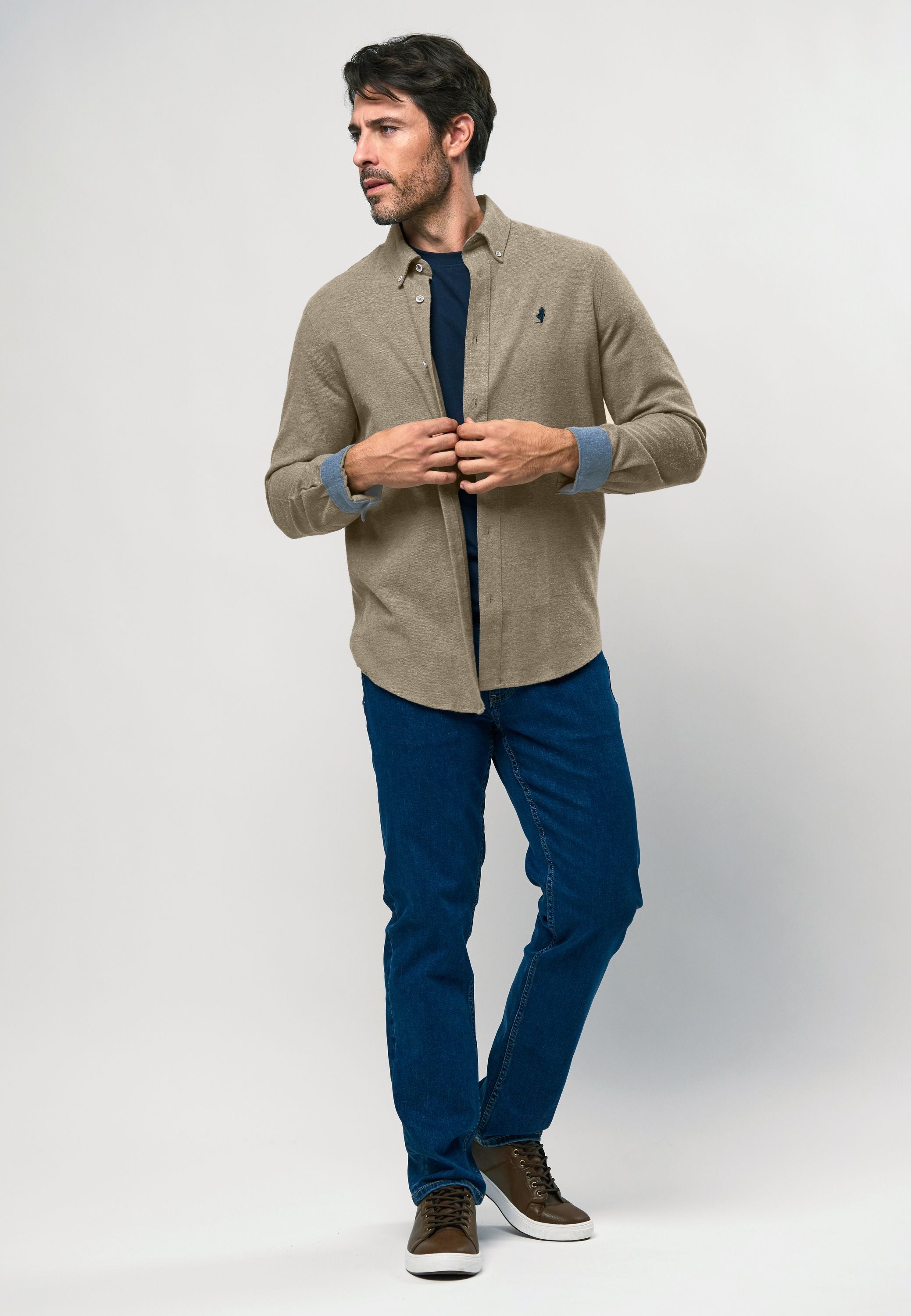 Adam er en klassisk og alsidig langærmet skjorte, der kombinerer komfort med et tidløst udtryk. Det rene bomuldsstof føles blødt og behageligt mod huden og giver skjorten et let børstet look, som tilfører varme og tekstur. Perfekt til hverdagsbrug eller lag-på-lag styling på køligere dage. Adam har gennemgående knaplukning med naturligt tonede knapper og en button-down krave, der holder formen. Detaljer som det kontrastfarvede kravefor og det broderede Rider-logo på brystet fuldender udtrykket.