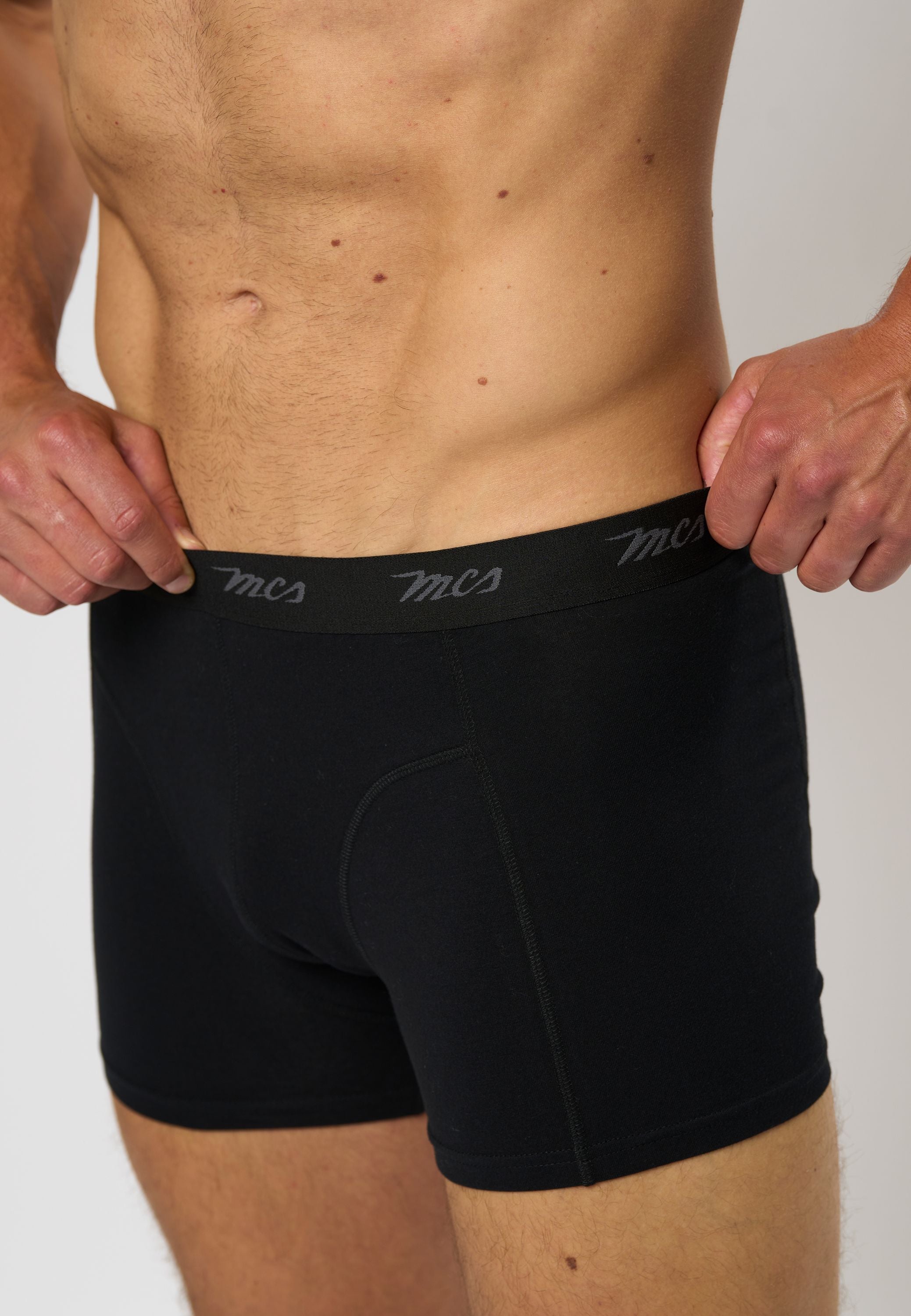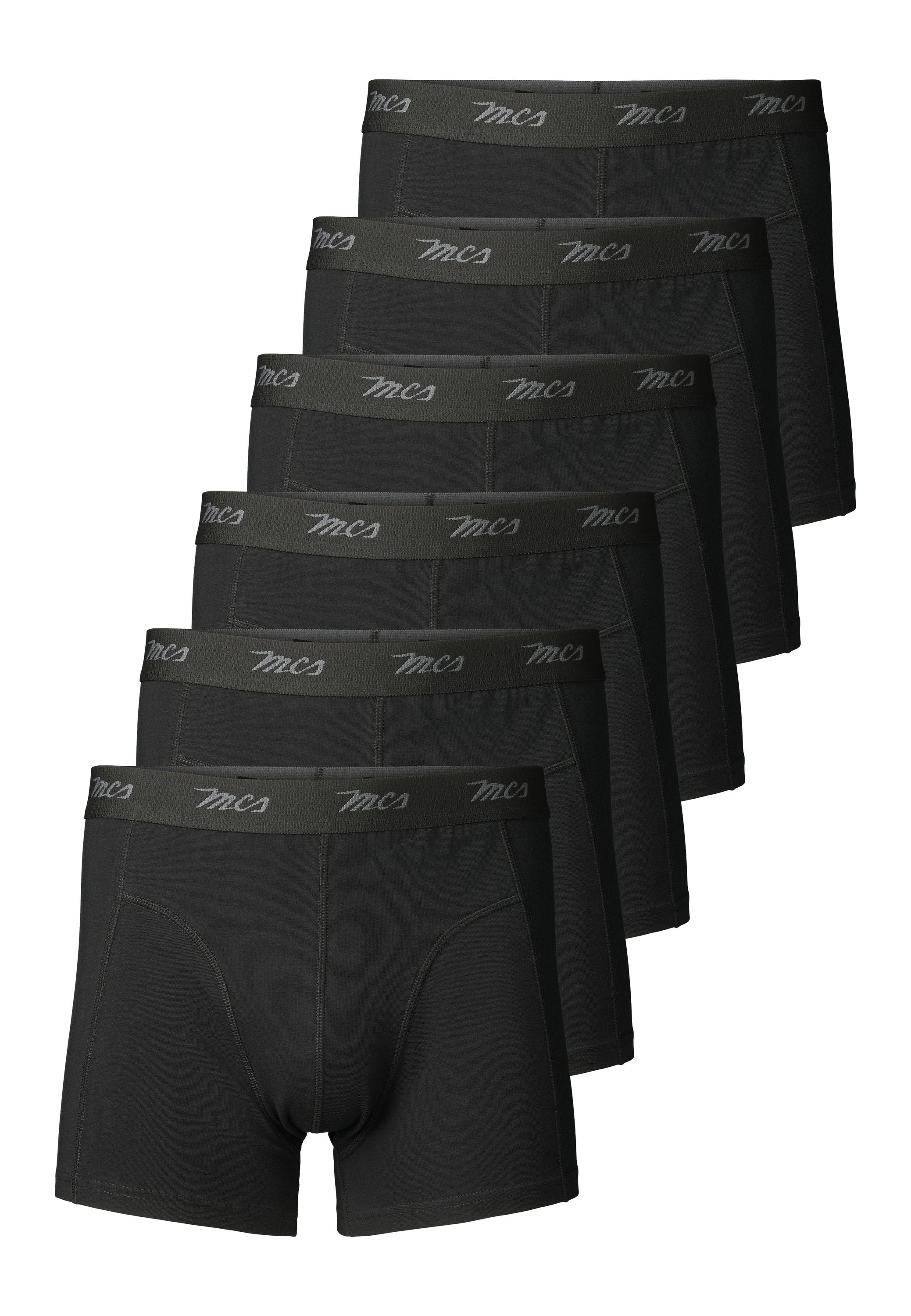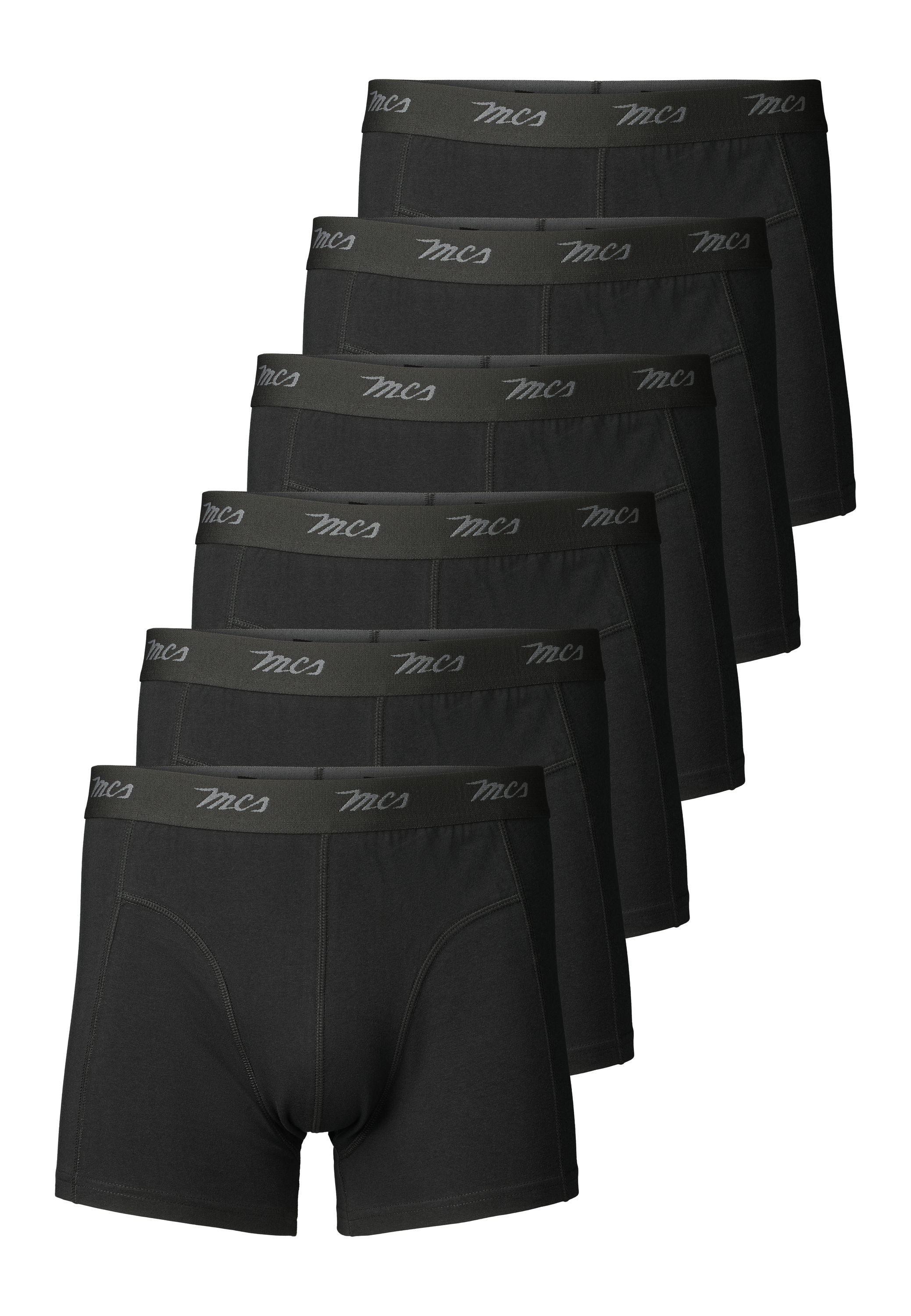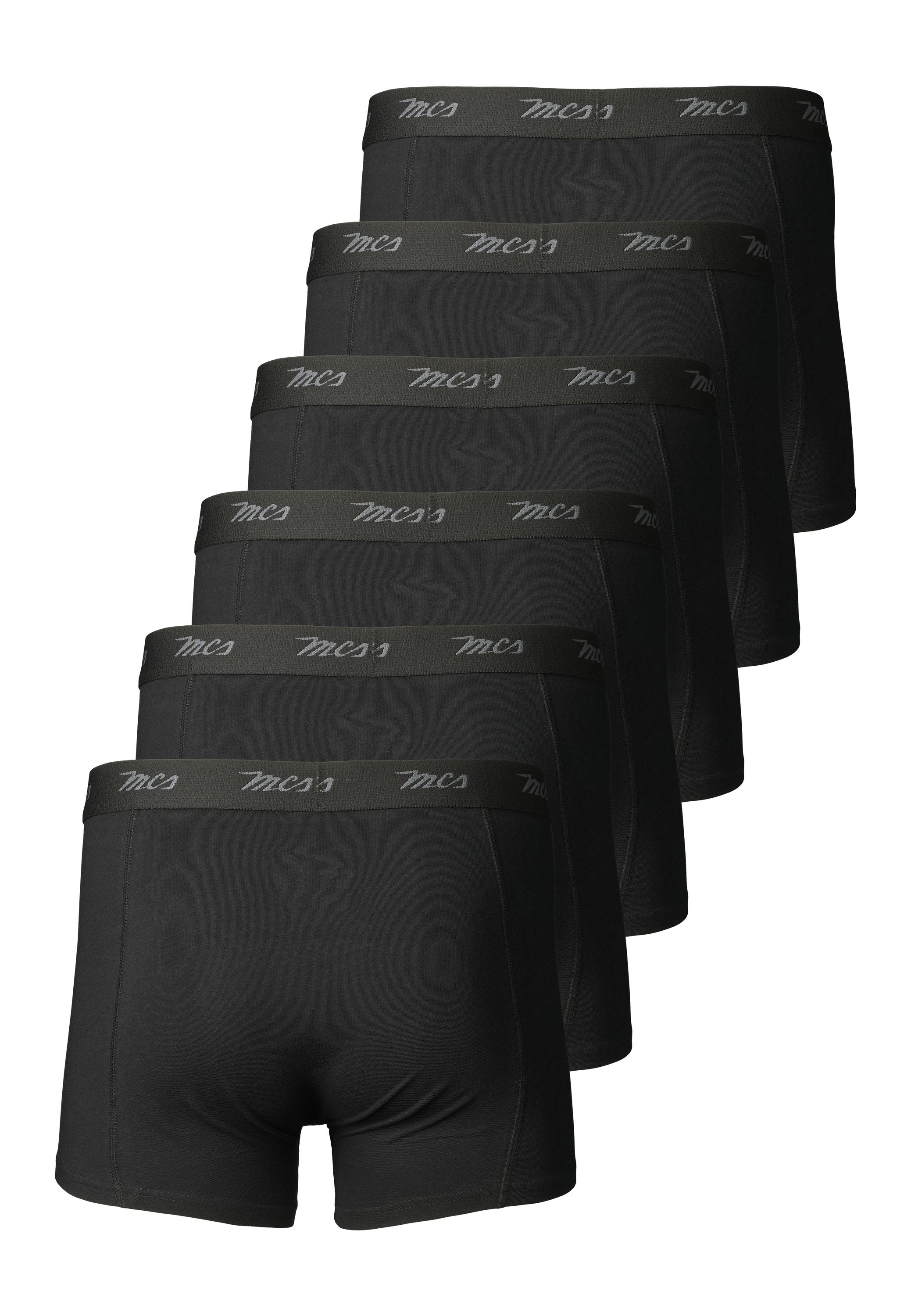 MCS Grey boxershorts leveres som en praktisk 6-pack og kombinerer komfort, funktionalitet og klassisk design. Modellen har en tætsiddende pasform, der følger kroppens bevægelser uden at stramme, og en elastisk linning med diskret MCS-logo. Materialeblandingen af 65% bambus, 30% bomuld og 5% elastan giver en blød og åndbar kvalitet med naturlig temperaturregulering og langvarig komfort – perfekt til hverdagsbrug.